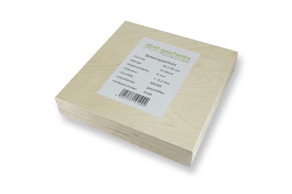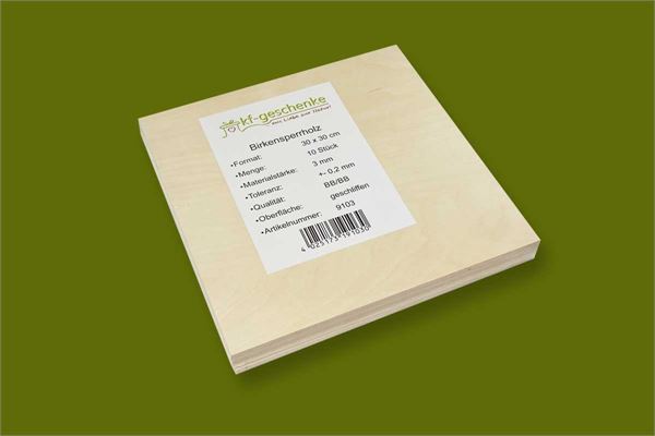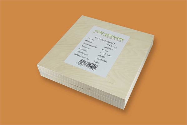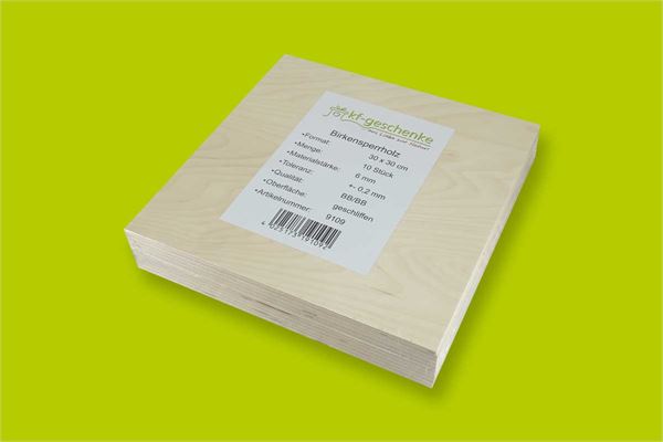 BIRKENSPERRHOLZ ZUSCHNITT 10 Stk. 30 x 30 CM