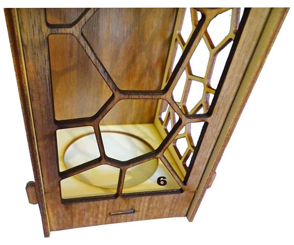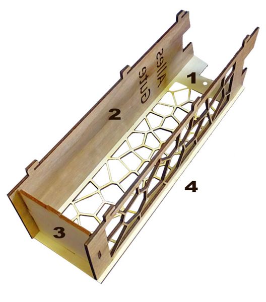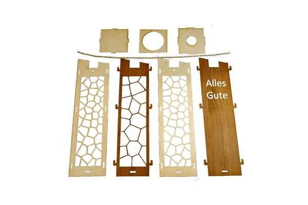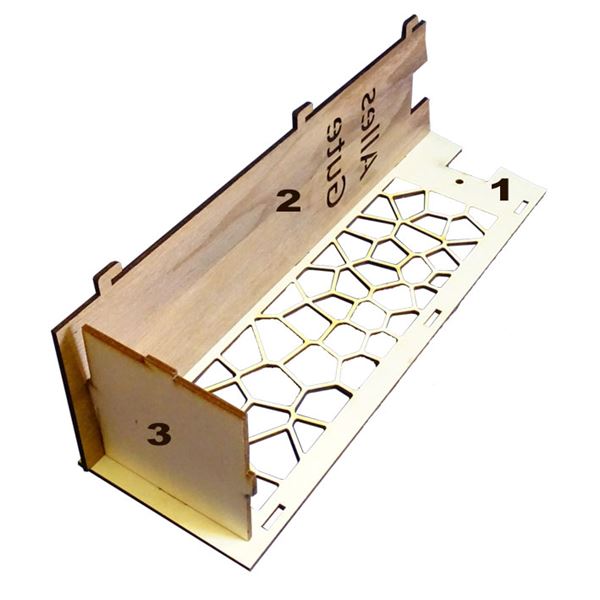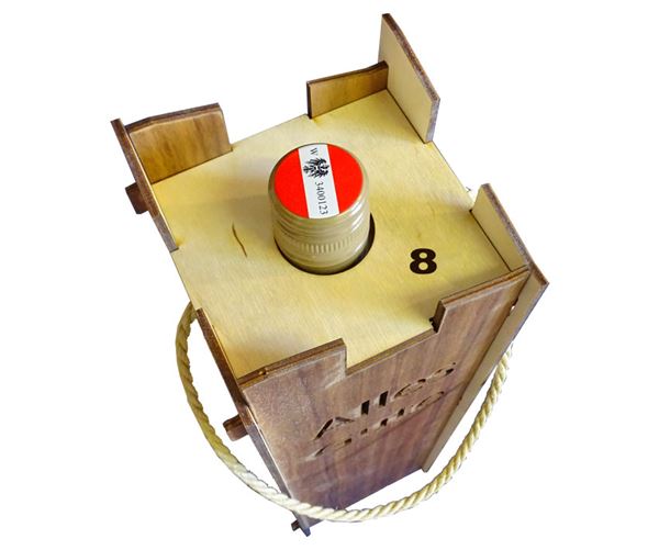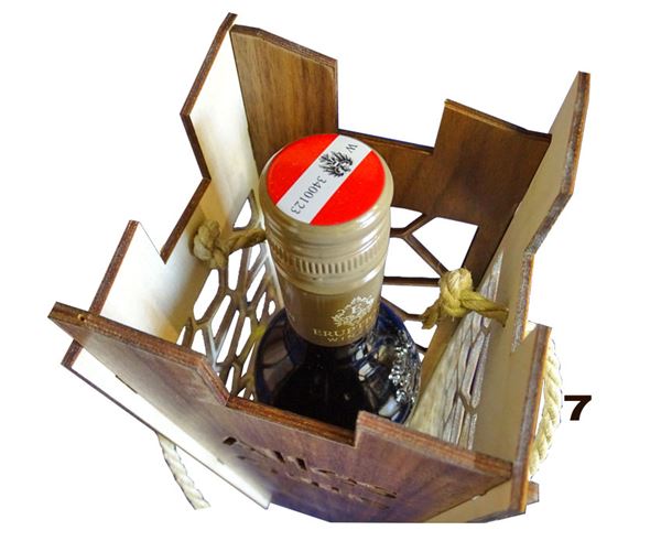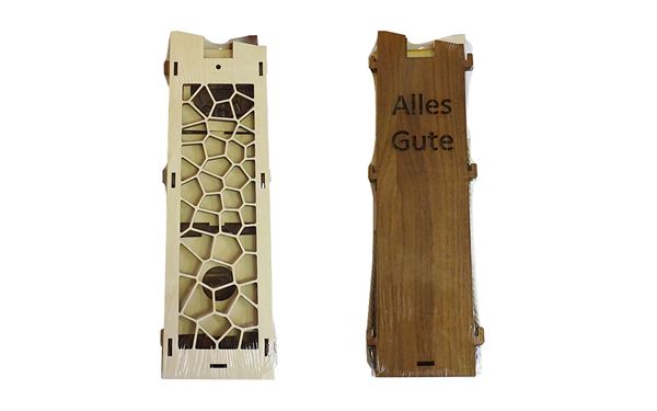 - 1 Einsatz aus Birkensperrholz, damit die Flasche nicht verrutschen kann