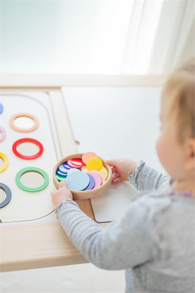 Die kleinen und großen Farbchips sind die ideale Ergänzung zu den Sortierplatten Grundfarben und machen das Farbenlernen noch spannender! Die handlichen Chips sind speziell für kleine Kinderhände gemacht und passen farblich perfekt zu den Farbkreisen auf den Sortierplatten.