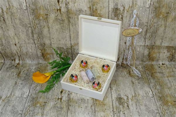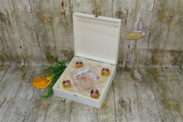 Beschläge (2 Scharniere und 1 Verschluss) messingfarben