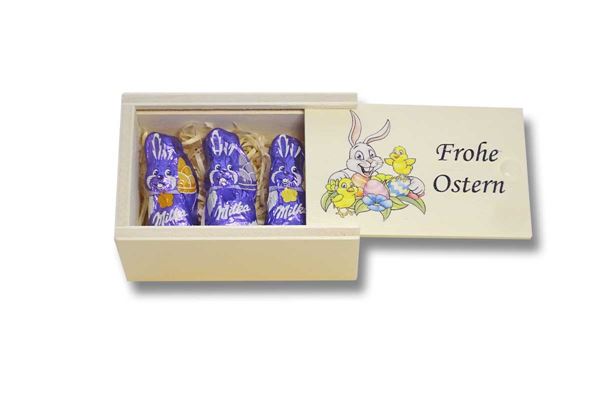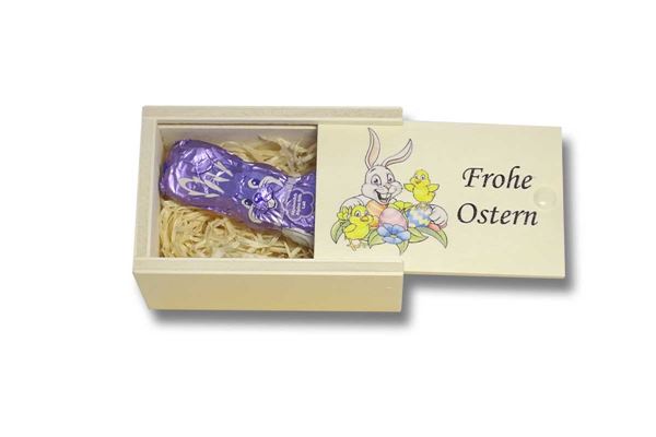 Machen Sie sich über ihr Ostergeschenk keine Gedanken mehr. Unsere Holzbox ist gefüllt mit kleinen Leckerein. Wenn Sie wollen geben Sie noch ein paar Euros dazu und schon ist ihr Ostergeschenk fertig.