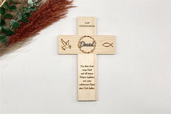 Das Highlight dieses Kreuzes ist die Personalisierungsmöglichkeit mit dem Namen des Kommunikanten. Durch den Namen wird dieses Geschenk zu etwas ganz Besonderem und trägt eine persönliche Note, die es zu einem einzigartigen Geschenk macht.
