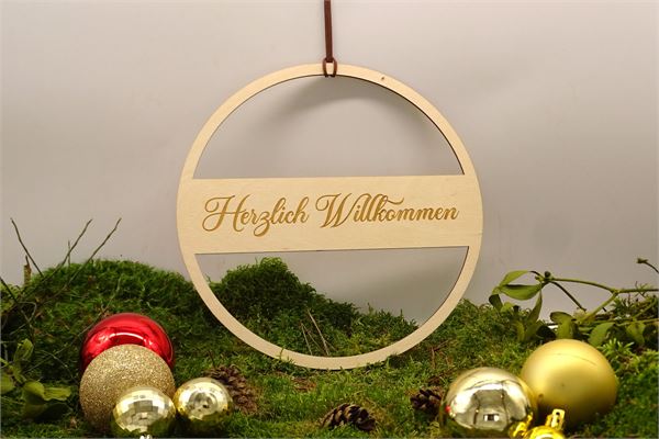 Türkranz "Herzlich Willkommen" aus Holz die perfekte Dekoration für deine Haustüre. Den Loop kannst du auch als