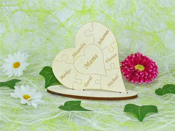 Unsere Mama ist der erste Teil eines Puzzles aus dem die Familie entsteht. Das Muttertagsherz soll ein Symbol dafür sein!