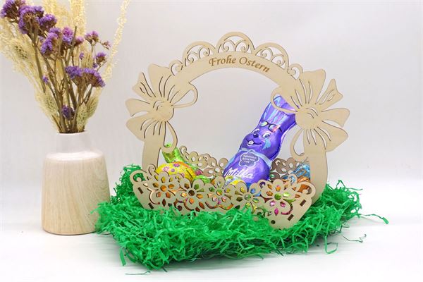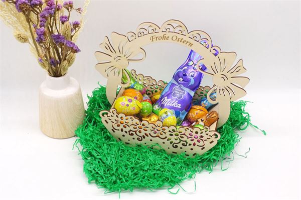 - Osterkorb aus feinem, hellem Birkensperrholz