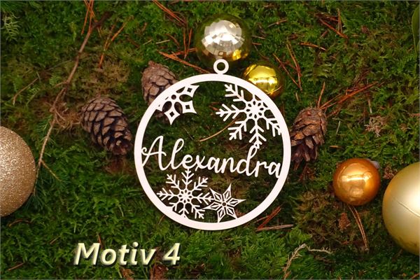 Personalisierter Geschenksanhänger - Motiv 4 - 4 Schneeflocken/Sterne