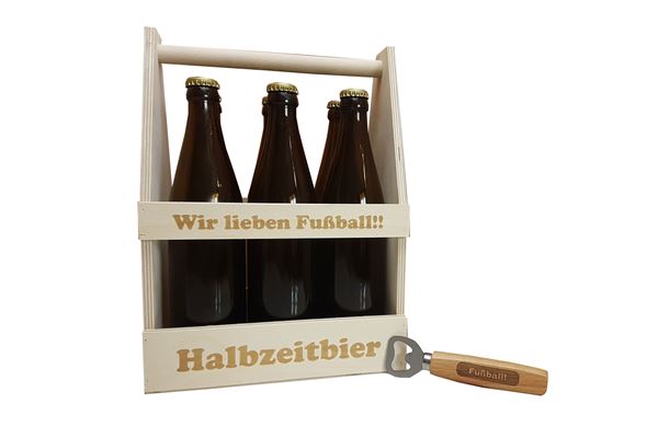 Der Bierträger mit unser Fußball-Lasergravur bzw. die Männerhandtasche wird mit Sicherheit ein Geschenks-Hit für Ehemann, Lebensgefährte, Papa, Opa, Onkel, Freunde,...Egal ob ein Fußballabend unter Männern, ein schöner Grillabend mit Freunden oder einfach eine gemütliche Runde, unser Flaschenträger ist die perfekte Handtasche für Männer um das Bier richtig und sicher zu transportieren.
