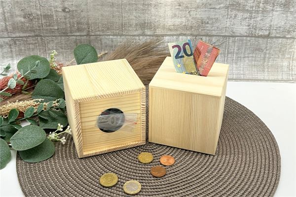Sorgfältig hergestellt von Hand aus nachhaltigem Fichtenholz, bietet sie nicht nur einen sicheren Aufbewahrungsort für Ihr Geld, sondern auch eine rustikale Ästhetik, die jeden Raum bereichert.