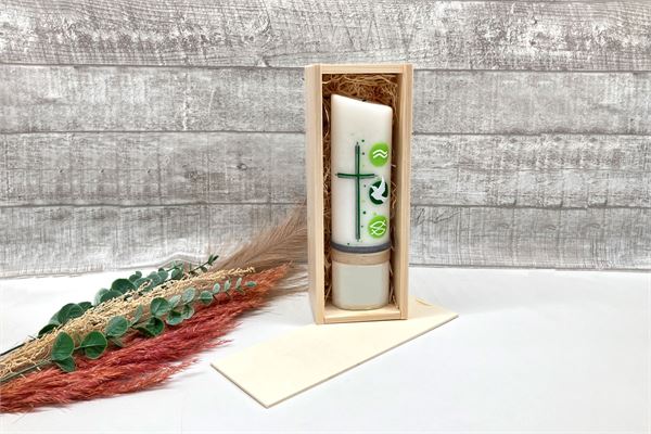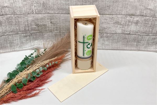 Bewahren Sie Ihre wertvollen Taufkerzen stilvoll und sicher auf mit unserer exquisiten Taufkerzenkiste. Diese sorgfältig gefertigte Kiste bietet den perfekten Schutz und eine ansprechende Präsentation für Ihre Taufkerzen.