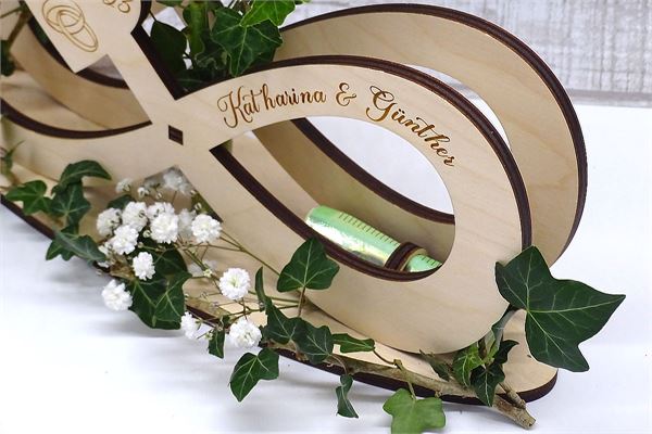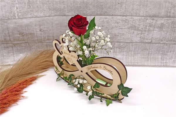 Möchtest du einem besonderen Brautpaar ein einzigartiges Geschenk machen oder deine Hochzeitsdekoration mit einer persönlichen Note versehen? Dann ist das handgefertigte Unendlichkeitszeichen mit persönlicher Gravur die perfekte Wahl.